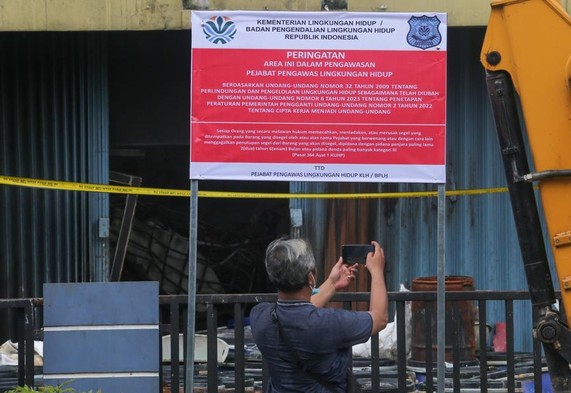 Tangerang Selatan – Gudang pestisida di Setu, Tangerang Selatan, terbakar hingga membuat Sungai Cisadane tercemar. Kini gudang tersebut diberi garis polisi.